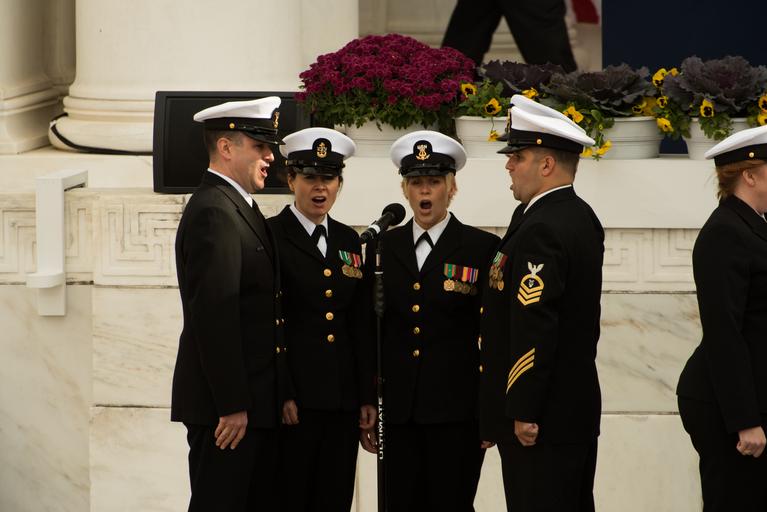| Keywords: #everydayveteransday #usnavyveterans #couragetoserve #veteransda everydayveteransdayusnavyveteranscouragetoserveveteransda #everydayveteransday #usnavyveterans #couragetoserve #veteransday everydayveteransdayusnavyveteranscouragetoserveveteransday 161111-N-HG258-087 ARLINGTON, VA (November 11, 2016) Vocalists from the U.S. Navy Band Sea Chanters chorus, from left to right, Petty Officer 1st class Robert Kurth, Chief Petty Officer Antje Farmer, Petty Officers 1st Class Sarah Tietsort, Ben Bransford and Chelsi Ervien (not pictured) and Chief Petty Officer Mike Belinkie perform during the National Veterans Day Observance at Arlington National Cemetery. The U.S. Navy Ceremonial band and Sea Chanters chorus participated in the national ovservance at the Memorial Ampetheater at Arlington National Cemetery honoring the men and women who have served and continue to serve in the U.S. armed forces during war and peacetime. (U.S. Navy photo by Senior Chief Petty Officer Stephen Hassay/released) 161111-N-HG258-087 ARLINGTON, VA (November 11, 2016) Vocalists from the U.S. Navy Band Sea Chanters chorus, from left to right, Petty Officer 1st class Robert Kurth, Chief Petty Officer Antje Farmer, Petty Officers 1st Class Sarah Tietsort, Ben Bransford and Chelsi Ervien (not pictured) and Chief Petty Officer Mike Belinkie perform during the National Veterans Day Observance at Arlington National Cemetery. The U.S. Navy Ceremonial band and Sea Chanters chorus participated in the national ovservance at the Memorial Ampetheater at Arlington National Cemetery honoring the men and women who have served and continue to serve in the U.S. armed forces during war and peacetime. (U.S. Navy photo by Senior Chief Petty Officer Stephen Hassay/released) |