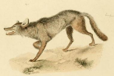 | Keywords: Natural History of New York (1842) Canis lycaon.png Illustration of an eastern wolf The text erroneously describes it as Canis lupus occidentalis a subspecies of grey wolf despite the fact that C l occidentalis never ranged as far east as New York which included the historical range of C lycaon The depicted animal's light coyote-like build further confirms its true identity It can't be a coyote as the illustration is from 1842 while coyotes only colonised New York during the 1920s Natural history of New York 1842 James E De Kay PD-old Canis lupus lycaon |