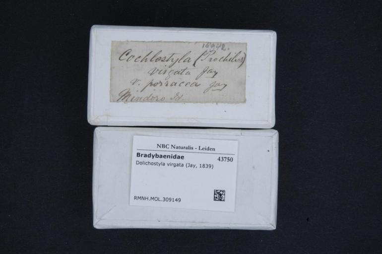 | Keywords: Naturalis Biodiversity Center - RMNH.MOL.309149 1 - Dolichostyla virgata (Jay, 1839) - Bradybaenidae - Mollusc shell.jpeg artwork Dimensions artwork Document type Bradybaenidae Dolichostyla Individual count Infraspecific epithet Infraspecific rank Institution Naturalis Kind of unit artwork Kind of unit specimen shell Life stage Medium artwork Nomenclatural code Source institute Rijksmuseum van Natuurlijke Historie Leiden Scale the width of the text on the species/QR-code label is 38 mm Occurrence ID page Other fields Other versions artwork Permission license Naturalis donation CC-0 Mollusca Publication location Scientific name Dolichostyla virgata Jay 1839 Scientific name authorship Jay 1839 Source url http //bioportal naturalis nl Specific epithet virgata State or province Subject keywords artwork Subject keywords publication Title artwork Title publication Type status Uploaded with GWToolset Naturalis_Biodiversity_Center_-_RMNH MOL 309149_1_-_Dolichostyla_virgata_ Jay _1839 _-_Bradybaenidae_-_Mollusc_shell http //medialib naturalis nl/file/id/RMNH MOL 309149_1/format/large Media donated by Naturalis Biodiversity Center Molluscs at Naturalis from the Rijksmuseum van Natuurlijke Historie Dolichostyla virgata Dolichostyla |