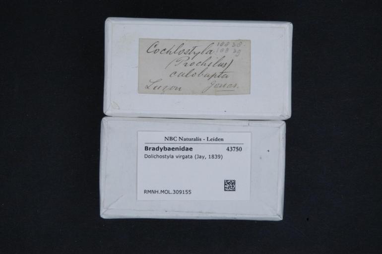 | Keywords: Naturalis Biodiversity Center - RMNH.MOL.309155 1 - Dolichostyla virgata (Jay, 1839) - Bradybaenidae - Mollusc shell.jpeg artwork Dimensions artwork Document type Bradybaenidae Dolichostyla Individual count Infraspecific epithet Infraspecific rank Institution Naturalis Kind of unit artwork Kind of unit specimen shell Life stage Medium artwork Nomenclatural code Source institute Rijksmuseum van Natuurlijke Historie Leiden Scale the width of the text on the species/QR-code label is 38 mm Occurrence ID page Other fields Other versions artwork Permission license Naturalis donation CC-0 Mollusca Publication location Scientific name Dolichostyla virgata Jay 1839 Scientific name authorship Jay 1839 Source url http //bioportal naturalis nl Specific epithet virgata State or province Subject keywords artwork Subject keywords publication Title artwork Title publication Type status Uploaded with GWToolset Naturalis_Biodiversity_Center_-_RMNH MOL 309155_1_-_Dolichostyla_virgata_ Jay _1839 _-_Bradybaenidae_-_Mollusc_shell http //medialib naturalis nl/file/id/RMNH MOL 309155_1/format/large Media donated by Naturalis Biodiversity Center Molluscs at Naturalis from the Rijksmuseum van Natuurlijke Historie Dolichostyla virgata Dolichostyla |