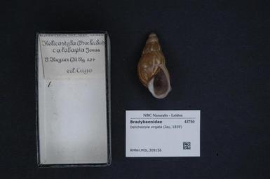 | Keywords: Naturalis Biodiversity Center - RMNH.MOL.309156 - Dolichostyla virgata (Jay, 1839) - Bradybaenidae - Mollusc shell.jpeg artwork Dimensions artwork Document type Bradybaenidae Dolichostyla Individual count Infraspecific epithet Infraspecific rank Institution Naturalis Kind of unit artwork Kind of unit specimen shell Life stage Medium artwork Nomenclatural code Source institute Rijksmuseum van Natuurlijke Historie Leiden Scale the width of the text on the species/QR-code label is 38 mm Occurrence ID page Other fields Other versions artwork Permission license Naturalis donation CC-0 Mollusca Publication location Scientific name Dolichostyla virgata Jay 1839 Scientific name authorship Jay 1839 Source url http //bioportal naturalis nl Specific epithet virgata State or province Subject keywords artwork Subject keywords publication Title artwork Title publication Type status Uploaded with GWToolset Naturalis_Biodiversity_Center_-_RMNH MOL 309156_-_Dolichostyla_virgata_ Jay _1839 _-_Bradybaenidae_-_Mollusc_shell http //medialib naturalis nl/file/id/RMNH MOL 309156/format/large Media donated by Naturalis Biodiversity Center Molluscs at Naturalis from the Rijksmuseum van Natuurlijke Historie Dolichostyla virgata Dolichostyla |