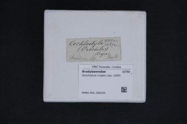 | Keywords: Naturalis Biodiversity Center - RMNH.MOL.309163 1 - Dolichostyla virgata (Jay, 1839) - Bradybaenidae - Mollusc shell.jpeg artwork Dimensions artwork Document type Bradybaenidae Dolichostyla Individual count Infraspecific epithet Infraspecific rank Institution Naturalis Kind of unit artwork Kind of unit specimen shell Life stage Medium artwork Nomenclatural code Source institute Rijksmuseum van Natuurlijke Historie Leiden Scale the width of the text on the species/QR-code label is 38 mm Occurrence ID page Other fields Other versions artwork Permission license Naturalis donation CC-0 Mollusca Publication location Scientific name Dolichostyla virgata Jay 1839 Scientific name authorship Jay 1839 Source url http //bioportal naturalis nl Specific epithet virgata State or province Subject keywords artwork Subject keywords publication Title artwork Title publication Type status Uploaded with GWToolset Naturalis_Biodiversity_Center_-_RMNH MOL 309163_1_-_Dolichostyla_virgata_ Jay _1839 _-_Bradybaenidae_-_Mollusc_shell http //medialib naturalis nl/file/id/RMNH MOL 309163_1/format/large Media donated by Naturalis Biodiversity Center Molluscs at Naturalis from the Rijksmuseum van Natuurlijke Historie Dolichostyla virgata Dolichostyla |