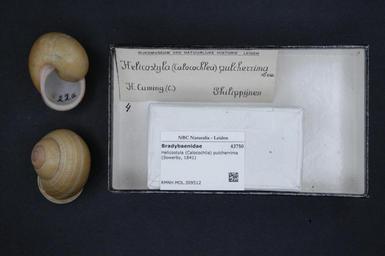 | Keywords: Naturalis Biodiversity Center - RMNH.MOL.309512 - Helicostyla (Calocochlia) pulcherrima (Sowerby, 1841) - Bradybaenidae - Mollusc shell.jpeg artwork Dimensions artwork Document type Bradybaenidae Helicostyla Individual count Infraspecific epithet Infraspecific rank Institution Naturalis Kind of unit artwork Kind of unit specimen shell Life stage Medium artwork Nomenclatural code Source institute Rijksmuseum van Natuurlijke Historie Leiden Scale the width of the text on the species/QR-code label is 38 mm Occurrence ID page Other fields Other versions artwork Permission license Naturalis donation CC-0 Mollusca Publication location Scientific name Helicostyla Calocochlia pulcherrima Sowerby 1841 Scientific name authorship Sowerby 1841 Source url http //bioportal naturalis nl Specific epithet pulcherrima State or province Subject keywords artwork Subject keywords publication Title artwork Title publication Type status Uploaded with GWToolset Naturalis_Biodiversity_Center_-_RMNH MOL 309512_-_Helicostyla_ Calocochlia _pulcherrima_ Sowerby _1841 _-_Bradybaenidae_-_Mollusc_shell http //medialib naturalis nl/file/id/RMNH MOL 309512/format/large Media donated by Naturalis Biodiversity Center Molluscs at Naturalis from the Rijksmuseum van Natuurlijke Historie Helicostyla pulcherrima Helicostyla |