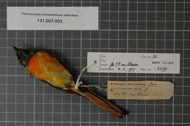 | Keywords: Naturalis Biodiversity Center - RMNH.AVES.124198 2 - Pericrocotus cinnamomeus saturatus Stuart Baker, 1920 - Campephagidae - bird skin specimen.jpeg artwork Dimensions artwork Document type Campephagidae Pericrocotus Individual count 1 Infraspecific epithet saturatus Infraspecific rank Institution Naturalis Kind of unit artwork Kind of unit specimen skin Life stage Indonesia Java Dramaga Buitenzorg Medium artwork Nomenclatural code Occurrence ID page Other fields Other versions artwork Permission license Naturalis donation CC-0 Publication location Scientific name Pericrocotus cinnamomeus saturatus Stuart Baker 1920 Scientific name authorship Stuart Baker 1920 male Source url http //bioportal naturalis nl Specific epithet cinnamomeus State or province Subject keywords artwork Subject keywords publication Title artwork Title publication Type status Uploaded with GWToolset Naturalis_Biodiversity_Center_-_RMNH AVES 124198_2_-_Pericrocotus_cinnamomeus_saturatus_Stuart_Baker _1920_-_Campephagidae_-_bird_skin_specimen http //medialib naturalis nl/file/id/RMNH AVES 124198_2/format/large Media donated by Naturalis Biodiversity Center Songbird specimens at Naturalis Biodiversity Center Pericrocotus cinnamomeus museum specimens |
