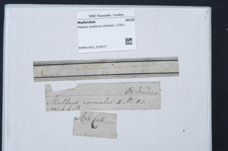 | Keywords: Naturalis Biodiversity Center - RMNH.MOL.318517 1 - Malleus anatinus (Gmelin, 1791) - Malleidae - Mollusc shell.jpeg artwork Dimensions artwork Document type Malleidae Malleus Individual count Infraspecific epithet Infraspecific rank Institution Naturalis Kind of unit artwork Kind of unit specimen shell Life stage Medium artwork Nomenclatural code Source institute Rijksmuseum van Natuurlijke Historie Leiden Scale the width of the text on the species/QR-code label is 38 mm Occurrence ID page Pterioida Other fields Other versions artwork Permission license Naturalis donation CC-0 Mollusca Publication location Scientific name Malleus anatinus Gmelin 1791 Scientific name authorship Gmelin 1791 Source url http //bioportal naturalis nl Specific epithet anatinus State or province Subject keywords artwork Subject keywords publication Title artwork Title publication Type status Uploaded with GWToolset Naturalis_Biodiversity_Center_-_RMNH MOL 318517_1_-_Malleus_anatinus_ Gmelin _1791 _-_Malleidae_-_Mollusc_shell http //medialib naturalis nl/file/id/RMNH MOL 318517_1/format/large Media donated by Naturalis Biodiversity Center Molluscs at Naturalis from the Rijksmuseum van Natuurlijke Historie Malleus anatinus Malleus genus |