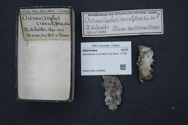 | Keywords: Naturalis Biodiversity Center - RMNH.MOL.319949 - Saccostrea cucullata (Von Born, 1778) - Ostreidae - Mollusc shell.jpeg artwork Dimensions artwork Document type Ostreidae subfamily Ostreinae Saccostrea Individual count Infraspecific epithet Infraspecific rank Institution Naturalis Kind of unit artwork Kind of unit specimen shell Life stage Medium artwork Nomenclatural code Source institute Rijksmuseum van Natuurlijke Historie Leiden Scale the width of the text on the species/QR-code label is 38 mm Occurrence ID page Other fields Other versions artwork Permission license Naturalis donation CC-0 Mollusca Publication location Scientific name Saccostrea cucullata Von Born 1778 Scientific name authorship Von Born 1778 Source url http //bioportal naturalis nl Specific epithet cucullata State or province Subject keywords artwork Subject keywords publication Title artwork Title publication Type status Uploaded with GWToolset Naturalis_Biodiversity_Center_-_RMNH MOL 319949_-_Saccostrea_cucullata_ Von_Born _1778 _-_Ostreidae_-_Mollusc_shell http //medialib naturalis nl/file/id/RMNH MOL 319949/format/large Media donated by Naturalis Biodiversity Center Molluscs at Naturalis from the Rijksmuseum van Natuurlijke Historie Saccostrea cucullata Saccostrea |
