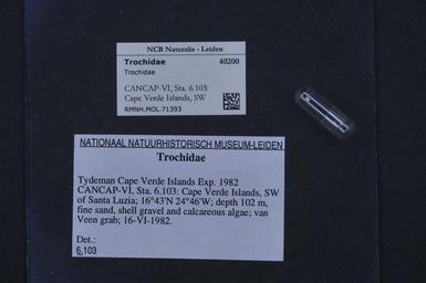 | Keywords: Naturalis Biodiversity Center - RMNH.MOL.71393 - Trochidae - Trochidae - Mollusc shell.jpeg artwork Dimensions artwork Document type Trochidae Trochidae Individual count Infraspecific epithet Infraspecific rank Institution Naturalis Kind of unit artwork Kind of unit specimen shell Life stage CANCAP-VI Sta 6 103 Cape Verde Islands SW of Santa Luzia; 16°43'N 24°46'W; depth 102 m fine sand shell gravel and calcareous algae; van Veen grab; 16 vi 1982 Medium artwork Nomenclatural code Source institute Rijksmuseum van Natuurlijke Historie Leiden Scale the width of the text on the species/QR-code label is 38 mm Occurrence ID page Other fields Other versions artwork Permission license Naturalis donation CC-0 Mollusca Publication location Scientific name Trochidae Scientific name authorship Source url http //bioportal naturalis nl Specific epithet State or province Santa Luzia Subject keywords artwork Subject keywords publication Title artwork Title publication Type status Uploaded with GWToolset Naturalis_Biodiversity_Center_-_RMNH MOL 71393_-_Trochidae_-_Trochidae_-_Mollusc_shell http //medialib naturalis nl/file/id/RMNH MOL 71393/format/large Media donated by Naturalis Biodiversity Center Molluscs at Naturalis from the Rijksmuseum van Natuurlijke Historie Trochidae Trochidae |