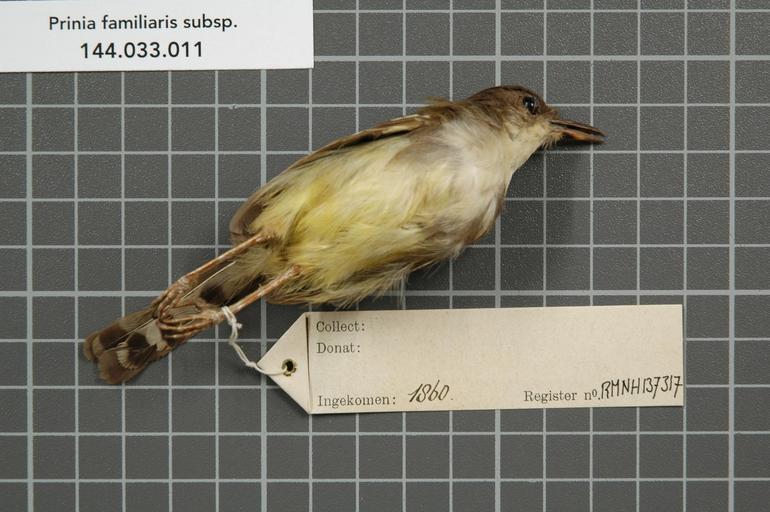 | Keywords: Naturalis Biodiversity Center - RMNH.AVES.137317 2 - Prinia familiaris subsp. - Sylviidae - bird skin specimen.jpeg artwork Dimensions artwork Document type Sylviidae Prinia Individual count 1 Infraspecific epithet subsp Infraspecific rank Institution Naturalis Kind of unit artwork Kind of unit specimen skin Life stage Indonesia Java Medium artwork Nomenclatural code Occurrence ID page Other fields Other versions artwork Permission license Naturalis donation CC-0 Publication location Scientific name Prinia familiaris subsp Scientific name authorship Source url http //bioportal naturalis nl Specific epithet familiaris State or province Subject keywords artwork Subject keywords publication Title artwork Title publication Type status Uploaded with GWToolset Naturalis_Biodiversity_Center_-_RMNH AVES 137317_2_-_Prinia_familiaris_subsp _-_Sylviidae_-_bird_skin_specimen http //medialib naturalis nl/file/id/RMNH AVES 137317_2/format/large Media donated by Naturalis Biodiversity Center Songbird specimens at Naturalis Biodiversity Center Prinia familiaris Prinia |