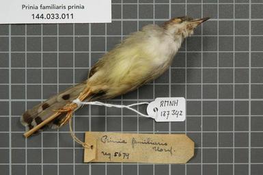 | Keywords: Naturalis Biodiversity Center - RMNH.AVES.137342 2 - Prinia familiaris prinia (Temminck, 1822) - Sylviidae - bird skin specimen.jpeg artwork Dimensions artwork Document type Sylviidae Prinia Individual count 1 Infraspecific epithet prinia Infraspecific rank Institution Naturalis Kind of unit artwork Kind of unit specimen skin Life stage Indonesia Java Buitenzorg Dramaga Medium artwork Nomenclatural code Occurrence ID page Other fields Other versions artwork Permission license Naturalis donation CC-0 Publication location Scientific name Prinia familiaris prinia Temminck 1822 Scientific name authorship Temminck 1822 female Source url http //bioportal naturalis nl Specific epithet familiaris State or province Subject keywords artwork Subject keywords publication Title artwork Title publication Type status Uploaded with GWToolset Naturalis_Biodiversity_Center_-_RMNH AVES 137342_2_-_Prinia_familiaris_prinia_ Temminck _1822 _-_Sylviidae_-_bird_skin_specimen http //medialib naturalis nl/file/id/RMNH AVES 137342_2/format/large Media donated by Naturalis Biodiversity Center Songbird specimens at Naturalis Biodiversity Center Prinia familiaris Prinia |