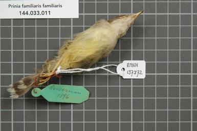 | Keywords: Naturalis Biodiversity Center - RMNH.AVES.137372 2 - Prinia familiaris prinia (Temminck, 1822) - Sylviidae - bird skin specimen.jpeg artwork Dimensions artwork Document type Sylviidae Prinia Individual count 1 Infraspecific epithet prinia Infraspecific rank Institution Naturalis Kind of unit artwork Kind of unit specimen skin Life stage Indonesia Oost Java Medium artwork Nomenclatural code Occurrence ID page Other fields Other versions artwork Permission license Naturalis donation CC-0 Publication location Scientific name Prinia familiaris prinia Temminck 1822 Scientific name authorship Temminck 1822 Source url http //bioportal naturalis nl Specific epithet familiaris State or province Oost Java Subject keywords artwork Subject keywords publication Title artwork Title publication Type status Uploaded with GWToolset Naturalis_Biodiversity_Center_-_RMNH AVES 137372_2_-_Prinia_familiaris_prinia_ Temminck _1822 _-_Sylviidae_-_bird_skin_specimen http //medialib naturalis nl/file/id/RMNH AVES 137372_2/format/large Media donated by Naturalis Biodiversity Center Songbird specimens at Naturalis Biodiversity Center Prinia familiaris Prinia |