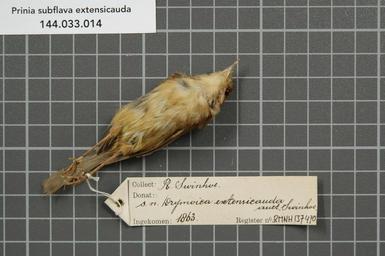 | Keywords: Naturalis Biodiversity Center - RMNH.AVES.137470 2 - Prinia subflava extensicauda (Swinhoe, 1860) - Sylviidae - bird skin specimen.jpeg artwork Dimensions artwork Document type Sylviidae Prinia Individual count 1 Infraspecific epithet extensicauda Infraspecific rank Institution Naturalis Kind of unit artwork Kind of unit specimen skin Life stage Formosa Medium artwork Nomenclatural code Additional identification info auct Swinhoe Occurrence ID page Other fields Other versions artwork Permission license Naturalis donation CC-0 Publication location Scientific name Prinia subflava extensicauda Swinhoe 1860 Scientific name authorship Swinhoe 1860 Source url http //bioportal naturalis nl Specific epithet subflava State or province Subject keywords artwork Subject keywords publication Title artwork Title publication Type status Uploaded with GWToolset Naturalis_Biodiversity_Center_-_RMNH AVES 137470_2_-_Prinia_subflava_extensicauda_ Swinhoe _1860 _-_Sylviidae_-_bird_skin_specimen http //medialib naturalis nl/file/id/RMNH AVES 137470_2/format/large Media donated by Naturalis Biodiversity Center Songbird specimens at Naturalis Biodiversity Center Prinia subflava Prinia |