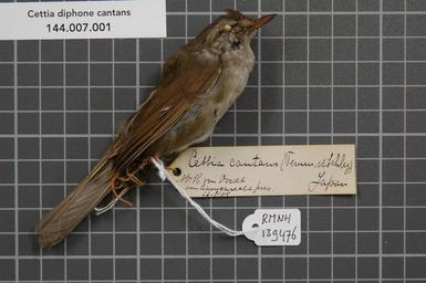 | Keywords: Naturalis Biodiversity Center - RMNH.AVES.139476 1 - Cettia diphone cantans (Temminck and Schlegel, 1847) - Sylviidae - bird skin specimen.jpeg artwork Dimensions artwork Document type Sylviidae Cettia Individual count 1 Infraspecific epithet cantans Infraspecific rank Institution Naturalis Kind of unit artwork Kind of unit specimen skin Life stage Japan Medium artwork Nomenclatural code Occurrence ID page Other fields Other versions artwork Permission license Naturalis donation CC-0 Publication location Scientific name Cettia diphone cantans Temminck and Schlegel 1847 Scientific name authorship Temminck and Schlegel 1847 Source url http //bioportal naturalis nl Specific epithet diphone State or province Subject keywords artwork Subject keywords publication Title artwork Title publication Type status Uploaded with GWToolset Naturalis_Biodiversity_Center_-_RMNH AVES 139476_1_-_Cettia_diphone_cantans_ Temminck_and_Schlegel _1847 _-_Sylviidae_-_bird_skin_specimen http //medialib naturalis nl/file/id/RMNH AVES 139476_1/format/large Media donated by Naturalis Biodiversity Center Songbird specimens at Naturalis Biodiversity Center Horornis diphone Cettia |