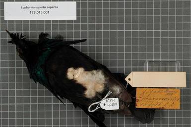 | Keywords: Naturalis Biodiversity Center - RMNH.AVES.140801 2 - Lophorina superba superba (Pennant, 1781) - Paradisaeidae - bird skin specimen.jpeg artwork Dimensions artwork Document type Paradisaeidae Lophorina Individual count 1 Infraspecific epithet superba Infraspecific rank Institution Naturalis Kind of unit artwork Kind of unit specimen skin Life stage Arfak Warmendi Medium artwork Nomenclatural code Additional info L Occurrence ID page Other fields Other versions artwork Permission license Naturalis donation CC-0 Publication location Scientific name Lophorina superba superba Pennant 1781 Scientific name authorship Pennant 1781 male Source url http //bioportal naturalis nl Specific epithet superba State or province Arfak Subject keywords artwork Subject keywords publication Title artwork Title publication Type status Uploaded with GWToolset Naturalis_Biodiversity_Center_-_RMNH AVES 140801_2_-_Lophorina_superba_superba_ Pennant _1781 _-_Paradisaeidae_-_bird_skin_specimen http //medialib naturalis nl/file/id/RMNH AVES 140801_2/format/large Media donated by Naturalis Biodiversity Center Songbird specimens at Naturalis Biodiversity Center Lophorina superba Lophorina |