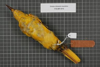 | Keywords: Naturalis Biodiversity Center - RMNH.AVES.141365 2 - Oriolus chinensis maculatus Vieillot, 1817 - Oriolidae - bird skin specimen.jpeg artwork Dimensions artwork Document type Oriolidae Oriolus Individual count 1 Infraspecific epithet maculatus Infraspecific rank Institution Naturalis Kind of unit artwork Kind of unit specimen skin Life stage juvenile Indonesia Java Dramaga Buitenzorg Medium artwork Nomenclatural code Occurrence ID page Other fields Other versions artwork Permission license Naturalis donation CC-0 Publication location Scientific name Oriolus chinensis maculatus Vieillot 1817 Scientific name authorship Vieillot 1817 male Source url http //bioportal naturalis nl Specific epithet chinensis State or province Subject keywords artwork Subject keywords publication Title artwork Title publication Type status Uploaded with GWToolset Naturalis_Biodiversity_Center_-_RMNH AVES 141365_2_-_Oriolus_chinensis_maculatus_Vieillot _1817_-_Oriolidae_-_bird_skin_specimen http //medialib naturalis nl/file/id/RMNH AVES 141365_2/format/large Media donated by Naturalis Biodiversity Center Songbird specimens at Naturalis Biodiversity Center Oriolus chinensis Oriolus |