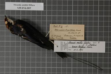 | Keywords: Naturalis Biodiversity Center - RMNH.AVES.125102 1 - Hirundo smithii filifera Stephens, 1825 - Hirundinidae - bird skin specimen.jpeg artwork Dimensions artwork Document type Hirundinidae Hirundo Individual count 1 Infraspecific epithet filifera Infraspecific rank Institution Naturalis Kind of unit artwork Kind of unit specimen skin Life stage India Nilghiris Coonoor Medium artwork Nomenclatural code Sex remark male Occurrence ID page Other fields Other versions artwork Permission license Naturalis donation CC-0 Publication location Scientific name Hirundo smithii filifera Stephens 1825 Scientific name authorship Stephens 1825 male Source url http //bioportal naturalis nl Specific epithet smithii State or province Nilghiris Subject keywords artwork Subject keywords publication Title artwork Title publication Type status Uploaded with GWToolset Naturalis_Biodiversity_Center_-_RMNH AVES 125102_1_-_Hirundo_smithii_filifera_Stephens _1825_-_Hirundinidae_-_bird_skin_specimen http //medialib naturalis nl/file/id/RMNH AVES 125102_1/format/large Media donated by Naturalis Biodiversity Center Songbird specimens at Naturalis Biodiversity Center Hirundo smithii museum specimens |