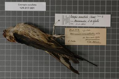 | Keywords: Naturalis Biodiversity Center - RMNH.AVES.125122 1 - Cecropis cucullata (Boddaert, 1783) - Hirundinidae - bird skin specimen.jpeg artwork Dimensions artwork Document type Hirundinidae Cecropis Individual count 1 Infraspecific epithet Infraspecific rank Institution Naturalis Kind of unit artwork Kind of unit specimen skin Life stage Z W Afrika Mossamedes Medium artwork Nomenclatural code Additional identification info NB War unbestimmt Sex remark female Coll Occurrence ID page Other fields Other versions artwork Permission license Naturalis donation CC-0 Publication location Scientific name Cecropis cucullata Boddaert 1783 Scientific name authorship Boddaert 1783 female Source url http //bioportal naturalis nl Specific epithet cucullata State or province Mossamedes Subject keywords artwork Subject keywords publication Title artwork Title publication Type status Uploaded with GWToolset Naturalis_Biodiversity_Center_-_RMNH AVES 125122_1_-_Cecropis_cucullata_ Boddaert _1783 _-_Hirundinidae_-_bird_skin_specimen http //medialib naturalis nl/file/id/RMNH AVES 125122_1/format/large Media donated by Naturalis Biodiversity Center Songbird specimens at Naturalis Biodiversity Center Cecropis cucullata museum specimens |