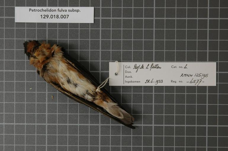 | Keywords: Naturalis Biodiversity Center - RMNH.AVES.125195 2 - Petrochelidon fulva subsp. - Hirundinidae - bird skin specimen.jpeg artwork Dimensions artwork Document type Hirundinidae Petrochelidon Individual count 1 Infraspecific epithet subsp Infraspecific rank Institution Naturalis Kind of unit artwork Kind of unit specimen skin Life stage Cuba San Diego de los Banos Medium artwork Nomenclatural code Occurrence ID page Other fields Other versions artwork Permission license Naturalis donation CC-0 Publication location Scientific name Petrochelidon fulva subsp Scientific name authorship Source url http //bioportal naturalis nl Specific epithet fulva State or province Subject keywords artwork Subject keywords publication Title artwork Title publication Type status Uploaded with GWToolset Naturalis_Biodiversity_Center_-_RMNH AVES 125195_2_-_Petrochelidon_fulva_subsp _-_Hirundinidae_-_bird_skin_specimen http //medialib naturalis nl/file/id/RMNH AVES 125195_2/format/large Media donated by Naturalis Biodiversity Center Songbird specimens at Naturalis Biodiversity Center Petrochelidon fulva museum specimens |