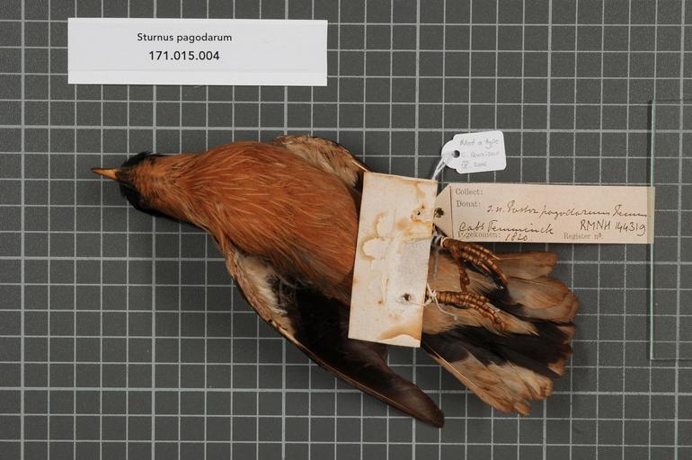 | Keywords: Naturalis Biodiversity Center - RMNH.AVES.144319 2 - Sturnus pagodarum (J.F. Gmelin, 1789) - Sturnidae - bird skin specimen.jpeg artwork Dimensions artwork Document type Sturnidae Sturnus Individual count 1 Infraspecific epithet Infraspecific rank Institution Naturalis Kind of unit artwork Kind of unit specimen skin Life stage Inde Bengale Medium artwork Nomenclatural code Check type Country remark on labele RMNH Bengalen Occurrence ID page Other fields Other versions artwork Permission license Naturalis donation CC-0 Publication location Scientific name Sturnus pagodarum J F Gmelin 1789 Scientific name authorship J F Gmelin 1789 male Source url http //bioportal naturalis nl Specific epithet pagodarum State or province Subject keywords artwork Subject keywords publication Title artwork Title publication Type status Uploaded with GWToolset Naturalis_Biodiversity_Center_-_RMNH AVES 144319_2_-_Sturnus_pagodarum_ J F _Gmelin _1789 _-_Sturnidae_-_bird_skin_specimen http //medialib naturalis nl/file/id/RMNH AVES 144319_2/format/large Media donated by Naturalis Biodiversity Center Songbird specimens at Naturalis Biodiversity Center Sturnia pagodarum |