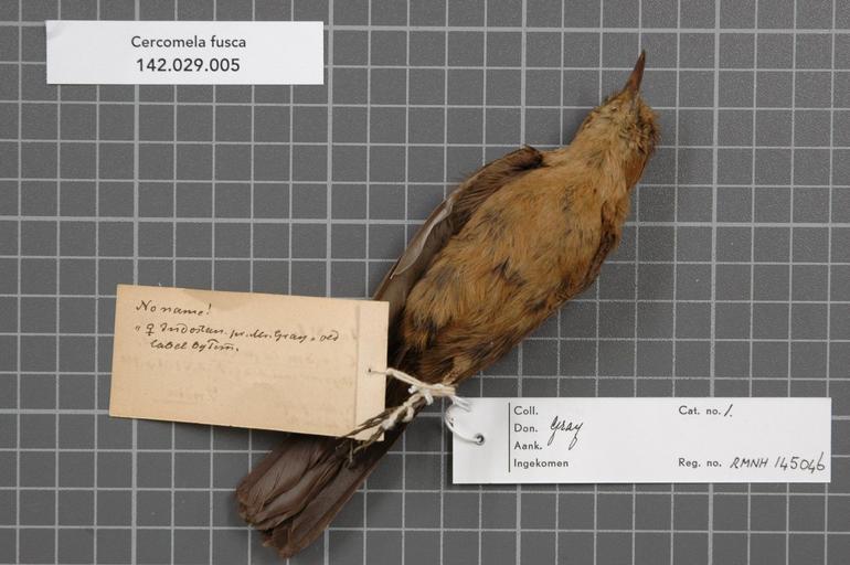 Keywords: Naturalis Biodiversity Center - RMNH.AVES.145046 2 - Cercomela fusca (Blyth, 1851) - Turdidae - bird skin specimen.jpeg artwork Dimensions artwork Document type Turdidae Cercomela Individual count 1 Infraspecific epithet Infraspecific rank Institution Naturalis Kind of unit artwork Kind of unit specimen skin Life stage India Medium artwork Nomenclatural code ADDITIONAL identification info No name ADDITIONAL label info female Indostein pr Mr gray old labele by Temm Sex remark Finsch label female label Occurrence ID page Other fields Other versions artwork Permission license Naturalis donation CC-0 Publication location Scientific name Cercomela fusca Blyth 1851 Scientific name authorship Blyth 1851 female Source url http //bioportal naturalis nl Specific epithet fusca State or province Subject keywords artwork Subject keywords publication Title artwork Title publication Type status Uploaded with GWToolset Naturalis_Biodiversity_Center_-_RMNH AVES 145046_2_-_Cercomela_fusca_ Blyth _1851 _-_Turdidae_-_bird_skin_specimen http //medialib naturalis nl/file/id/RMNH AVES 145046_2/format/large Media donated by Naturalis Biodiversity Center Songbird specimens at Naturalis Biodiversity Center Oenanthe fusca museum specimens |