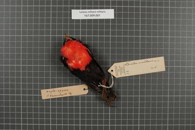 | Keywords: Naturalis Biodiversity Center - RMNH.AVES.14634 2 - Leistes militaris militaris (Linnaeus, 1758) - Icteridae - bird skin specimen.jpeg artwork Dimensions artwork Document type Icteridae Leistes Individual count 1 Infraspecific epithet militaris Infraspecific rank Institution Naturalis Kind of unit artwork Kind of unit specimen skin Life stage Surinam Zanderij Medium artwork Nomenclatural code Occurrence ID page Other fields Other versions artwork Permission license Naturalis donation CC-0 Publication location Scientific name Leistes militaris militaris Linnaeus 1758 Scientific name authorship Linnaeus 1758 male Source url http //bioportal naturalis nl Specific epithet militaris State or province Subject keywords artwork Subject keywords publication Title artwork Title publication Type status Uploaded with GWToolset Naturalis_Biodiversity_Center_-_RMNH AVES 14634_2_-_Leistes_militaris_militaris_ Linnaeus _1758 _-_Icteridae_-_bird_skin_specimen http //medialib naturalis nl/file/id/RMNH AVES 14634_2/format/large Media donated by Naturalis Biodiversity Center Songbird specimens at Naturalis Biodiversity Center Sturnella militaris |
