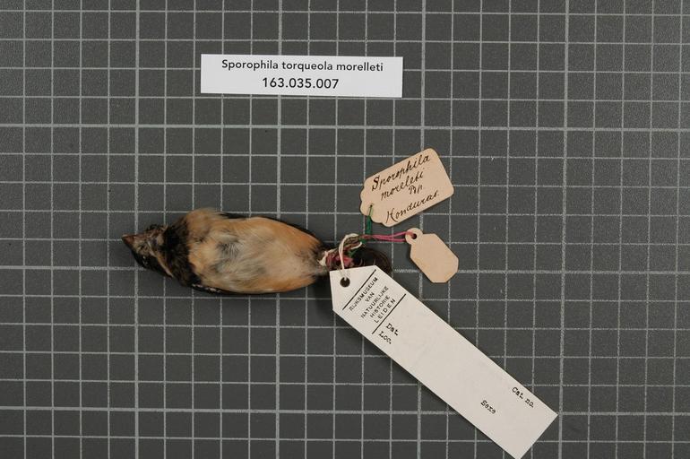 | Keywords: Naturalis Biodiversity Center - RMNH.AVES.149879 2 - Presrophila torqueola morelleti (Bonaparte, 1851) - Emberizidae - bird skin specimen.jpeg artwork Dimensions artwork Document type Emberizidae Sporophila Individual count 1 Infraspecific epithet morelleti Infraspecific rank Institution Naturalis Kind of unit artwork Kind of unit specimen skin Life stage Honduras San Pedro Medium artwork Nomenclatural code Occurrence ID page Other fields Other versions artwork Permission license Naturalis donation CC-0 Publication location Scientific name Presrophila torqueola morelleti Bonaparte 1851 Scientific name authorship Bonaparte 1851 male Source url http //bioportal naturalis nl Specific epithet torqueola State or province Subject keywords artwork Subject keywords publication Title artwork Title publication Type status Uploaded with GWToolset Naturalis_Biodiversity_Center_-_RMNH AVES 149879_2_-_Presrophila_torqueola_morelleti_ Bonaparte _1851 _-_Emberizidae_-_bird_skin_specimen http //medialib naturalis nl/file/id/RMNH AVES 149879_2/format/large Media donated by Naturalis Biodiversity Center Songbird specimens at Naturalis Biodiversity Center Sporophila Sporophila torqueola |
