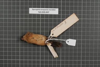| Keywords: Naturalis Biodiversity Center - RMNH.AVES.149878 2 - Presrophila torqueola morelleti (Bonaparte, 1851) - Emberizidae - bird skin specimen.jpeg artwork Dimensions artwork Document type Emberizidae Sporophila Individual count 1 Infraspecific epithet morelleti Infraspecific rank Institution Naturalis Kind of unit artwork Kind of unit specimen skin Life stage juvenile Middel-Amerika Puchidra Medium artwork Nomenclatural code Sex remark on label male juv on back side label femaleon original label female Occurrence ID page Other fields Other versions artwork Permission license Naturalis donation CC-0 Publication location Scientific name Presrophila torqueola morelleti Bonaparte 1851 Scientific name authorship Bonaparte 1851 male Source url http //bioportal naturalis nl Specific epithet torqueola State or province Subject keywords artwork Subject keywords publication Title artwork Title publication Type status Uploaded with GWToolset Naturalis_Biodiversity_Center_-_RMNH AVES 149878_2_-_Presrophila_torqueola_morelleti_ Bonaparte _1851 _-_Emberizidae_-_bird_skin_specimen http //medialib naturalis nl/file/id/RMNH AVES 149878_2/format/large Media donated by Naturalis Biodiversity Center Songbird specimens at Naturalis Biodiversity Center Sporophila Sporophila torqueola |