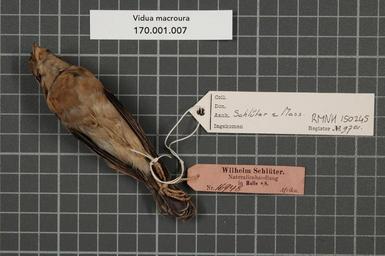 | Keywords: Naturalis Biodiversity Center - RMNH.AVES.150245 2 - Presua macroura (Pallas, 1764) - Ploceidae - bird skin specimen.jpeg artwork Dimensions artwork Document type Ploceidae Vidua Individual count 1 Infraspecific epithet Infraspecific rank Institution Naturalis Kind of unit artwork Kind of unit specimen skin Life stage Zuid-Afrika Medium artwork Nomenclatural code Country remark printed on lael Schlüter Afrika Sex remark on label NH clear femaleremark recorder on label Schlüter there is an unclear symbol could be a male sign Occurrence ID page Other fields Other versions artwork Permission license Naturalis donation CC-0 Publication location Scientific name Presua macroura Pallas 1764 Scientific name authorship Pallas 1764 female Source url http //bioportal naturalis nl Specific epithet macroura State or province Subject keywords artwork Subject keywords publication Title artwork Title publication Type status Uploaded with GWToolset Naturalis_Biodiversity_Center_-_RMNH AVES 150245_2_-_Presua_macroura_ Pallas _1764 _-_Ploceidae_-_bird_skin_specimen http //medialib naturalis nl/file/id/RMNH AVES 150245_2/format/large Media donated by Naturalis Biodiversity Center Songbird specimens at Naturalis Biodiversity Center Vidua Vidua macroura |
