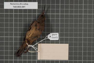 | Keywords: Naturalis Biodiversity Center - RMNH.AVES.150562 2 - Prestarinia afra subsp. - Nectariniidae - bird skin specimen.jpeg artwork Dimensions artwork Document type Nectariniidae Nectarinia Individual count 1 Infraspecific epithet subsp Infraspecific rank Institution Naturalis Kind of unit artwork Kind of unit specimen skin Life stage Cap Swellendam Medium artwork Nomenclatural code Occurrence ID page Other fields Other versions artwork Permission license Naturalis donation CC-0 Publication location Scientific name Prestarinia afra subsp Scientific name authorship female Source url http //bioportal naturalis nl Specific epithet afra State or province Cap Subject keywords artwork Subject keywords publication Title artwork Title publication Type status Uploaded with GWToolset Naturalis_Biodiversity_Center_-_RMNH AVES 150562_2_-_Prestarinia_afra_subsp _-_Nectariniidae_-_bird_skin_specimen http //medialib naturalis nl/file/id/RMNH AVES 150562_2/format/large Media donated by Naturalis Biodiversity Center Songbird specimens at Naturalis Biodiversity Center Nectarinia Cinnyris afer |