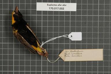 | Keywords: Naturalis Biodiversity Center - RMNH.AVES.151584 2 - Euplectes afer afer Gmelin, 1789 - Ploceidae - bird skin specimen.jpeg artwork Dimensions artwork Document type Ploceidae Euplectes Individual count 1 Infraspecific epithet afer Infraspecific rank Institution Naturalis Kind of unit artwork Kind of unit specimen skin Life stage Afrique W Gambos Medium artwork Nomenclatural code Occurrence ID page Other fields Other versions artwork Permission license Naturalis donation CC-0 Publication location Scientific name Euplectes afer afer Gmelin 1789 Scientific name authorship Gmelin 1789 male Source url http //bioportal naturalis nl Specific epithet afer State or province Afrique W Subject keywords artwork Subject keywords publication Title artwork Title publication Type status Uploaded with GWToolset Naturalis_Biodiversity_Center_-_RMNH AVES 151584_2_-_Euplectes_afer_afer_Gmelin _1789_-_Ploceidae_-_bird_skin_specimen http //medialib naturalis nl/file/id/RMNH AVES 151584_2/format/large Media donated by Naturalis Biodiversity Center Songbird specimens at Naturalis Biodiversity Center Euplectes afer Euplectes |