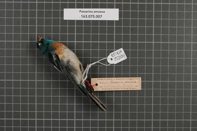 | Keywords: Naturalis Biodiversity Center - RMNH.AVES.152034 1 - Passerina amoena (Say, 1823) - Emberizidae - bird skin specimen.jpeg artwork Dimensions artwork Document type Emberizidae Passerina Individual count 1 Infraspecific epithet Infraspecific rank Institution Naturalis Kind of unit artwork Kind of unit specimen skin Life stage Tx Fort Davis Medium artwork Nomenclatural code Occurrence ID page Other fields Other versions artwork Permission license Naturalis donation CC-0 Publication location Scientific name Passerina amoena Say 1823 Scientific name authorship Say 1823 male Source url http //bioportal naturalis nl Specific epithet amoena State or province Tx Subject keywords artwork Subject keywords publication Title artwork Title publication Type status Uploaded with GWToolset Naturalis_Biodiversity_Center_-_RMNH AVES 152034_1_-_Passerina_amoena_ Say _1823 _-_Emberizidae_-_bird_skin_specimen http //medialib naturalis nl/file/id/RMNH AVES 152034_1/format/large Media donated by Naturalis Biodiversity Center Songbird specimens at Naturalis Biodiversity Center Passerina amoena Passerina |