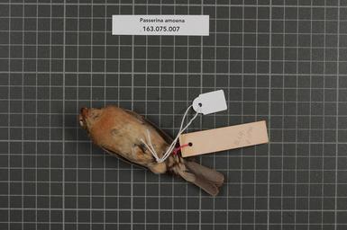 | Keywords: Naturalis Biodiversity Center - RMNH.AVES.152035 2 - Passerina amoena (Say, 1823) - Emberizidae - bird skin specimen.jpeg artwork Dimensions artwork Document type Emberizidae Passerina Individual count 1 Infraspecific epithet Infraspecific rank Institution Naturalis Kind of unit artwork Kind of unit specimen skin Life stage Cal Ballena Medium artwork Nomenclatural code Occurrence ID page Other fields Other versions artwork Permission license Naturalis donation CC-0 Publication location Scientific name Passerina amoena Say 1823 Scientific name authorship Say 1823 female Source url http //bioportal naturalis nl Specific epithet amoena State or province Cal Subject keywords artwork Subject keywords publication Title artwork Title publication Type status Uploaded with GWToolset Naturalis_Biodiversity_Center_-_RMNH AVES 152035_2_-_Passerina_amoena_ Say _1823 _-_Emberizidae_-_bird_skin_specimen http //medialib naturalis nl/file/id/RMNH AVES 152035_2/format/large Media donated by Naturalis Biodiversity Center Songbird specimens at Naturalis Biodiversity Center Passerina amoena Passerina |