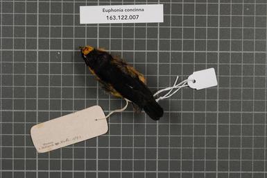 | Keywords: Naturalis Biodiversity Center - RMNH.AVES.152482 2 - Euphonia concinna Sclater, 1855 - Emberizidae - bird skin specimen.jpeg artwork Dimensions artwork Document type Emberizidae Euphonia Individual count 1 Infraspecific epithet Infraspecific rank Institution Naturalis Kind of unit artwork Kind of unit specimen skin Life stage adult Columbia Sta Fé de Bogota Medium artwork Nomenclatural code ADDITIONAL info X Sex remark on label male Occurrence ID page Other fields Other versions artwork Permission license Naturalis donation CC-0 Publication location Scientific name Euphonia concinna Sclater 1855 Scientific name authorship Sclater 1855 male Source url http //bioportal naturalis nl Specific epithet concinna State or province Subject keywords artwork Subject keywords publication Title artwork Title publication Type status Uploaded with GWToolset Naturalis_Biodiversity_Center_-_RMNH AVES 152482_2_-_Euphonia_concinna_Sclater _1855_-_Emberizidae_-_bird_skin_specimen http //medialib naturalis nl/file/id/RMNH AVES 152482_2/format/large Media donated by Naturalis Biodiversity Center Songbird specimens at Naturalis Biodiversity Center Euphonia concinna Euphonia |