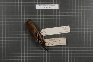 | Keywords: Naturalis Biodiversity Center - RMNH.AVES.154007 1 - Carduelis tristis salicamans (Grinnell,1897) - Fringillidae - bird skin specimen.jpeg artwork Dimensions artwork Document type Fringillidae Carduelis Individual count 1 Infraspecific epithet salicamans Infraspecific rank Institution Naturalis Kind of unit artwork Kind of unit specimen skin Life stage Californien San Francisco Medium artwork Nomenclatural code Occurrence ID page Other fields Other versions artwork Permission license Naturalis donation CC-0 Publication location Scientific name Carduelis tristis salicamans Grinnell 1897 Scientific name authorship Grinnell 1897 Source url http //bioportal naturalis nl Specific epithet tristis State or province Californien Subject keywords artwork Subject keywords publication Title artwork Title publication Type status Uploaded with GWToolset Naturalis_Biodiversity_Center_-_RMNH AVES 154007_1_-_Carduelis_tristis_salicamans_ Grinnell 1897 _-_Fringillidae_-_bird_skin_specimen http //medialib naturalis nl/file/id/RMNH AVES 154007_1/format/large Media donated by Naturalis Biodiversity Center Songbird specimens at Naturalis Biodiversity Center Spinus tristis Carduelis |