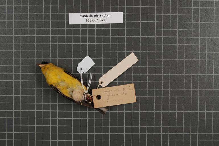 | Keywords: Naturalis Biodiversity Center - RMNH.AVES.154034 2 - Carduelis tristis subsp. - Fringillidae - bird skin specimen.jpeg artwork Dimensions artwork Document type Fringillidae Carduelis Individual count 1 Infraspecific epithet subsp Infraspecific rank Institution Naturalis Kind of unit artwork Kind of unit specimen skin Life stage Verenigde Staaten Medium artwork Nomenclatural code Occurrence ID page Other fields Other versions artwork Permission license Naturalis donation CC-0 Publication location Scientific name Carduelis tristis subsp Scientific name authorship male Source url http //bioportal naturalis nl Specific epithet tristis State or province Subject keywords artwork Subject keywords publication Title artwork Title publication Type status Uploaded with GWToolset Naturalis_Biodiversity_Center_-_RMNH AVES 154034_2_-_Carduelis_tristis_subsp _-_Fringillidae_-_bird_skin_specimen http //medialib naturalis nl/file/id/RMNH AVES 154034_2/format/large Media donated by Naturalis Biodiversity Center Songbird specimens at Naturalis Biodiversity Center Spinus tristis Carduelis |