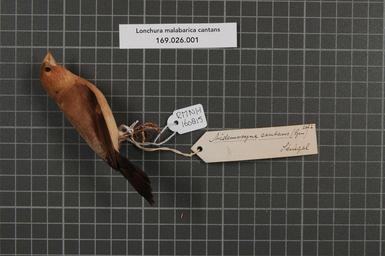 | Keywords: Naturalis Biodiversity Center - RMNH.AVES.160815 1 - Lonchura malabarica cantans (Gmelin, 1789) - Estrildidae - bird skin specimen.jpeg artwork Dimensions artwork Document type Estrildidae Lonchura Individual count 1 Infraspecific epithet cantans Infraspecific rank Institution Naturalis Kind of unit artwork Kind of unit specimen skin Life stage Sénégal Medium artwork Nomenclatural code Occurrence ID page Other fields Other versions artwork Permission license Naturalis donation CC-0 Publication location Scientific name Lonchura malabarica cantans Gmelin 1789 Scientific name authorship Gmelin 1789 Source url http //bioportal naturalis nl Specific epithet malabarica State or province Subject keywords artwork Subject keywords publication Title artwork Title publication Type status Uploaded with GWToolset Naturalis_Biodiversity_Center_-_RMNH AVES 160815_1_-_Lonchura_malabarica_cantans_ Gmelin _1789 _-_Estrildidae_-_bird_skin_specimen http //medialib naturalis nl/file/id/RMNH AVES 160815_1/format/large Media donated by Naturalis Biodiversity Center Songbird specimens at Naturalis Biodiversity Center Euodice malabarica Lonchura |