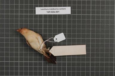 | Keywords: Naturalis Biodiversity Center - RMNH.AVES.160816 2 - Lonchura malabarica cantans (Gmelin, 1789) - Estrildidae - bird skin specimen.jpeg artwork Dimensions artwork Document type Estrildidae Lonchura Individual count 1 Infraspecific epithet cantans Infraspecific rank Institution Naturalis Kind of unit artwork Kind of unit specimen skin Life stage Sénégal Medium artwork Nomenclatural code Occurrence ID page Other fields Other versions artwork Permission license Naturalis donation CC-0 Publication location Scientific name Lonchura malabarica cantans Gmelin 1789 Scientific name authorship Gmelin 1789 Source url http //bioportal naturalis nl Specific epithet malabarica State or province Subject keywords artwork Subject keywords publication Title artwork Title publication Type status Uploaded with GWToolset Naturalis_Biodiversity_Center_-_RMNH AVES 160816_2_-_Lonchura_malabarica_cantans_ Gmelin _1789 _-_Estrildidae_-_bird_skin_specimen http //medialib naturalis nl/file/id/RMNH AVES 160816_2/format/large Media donated by Naturalis Biodiversity Center Songbird specimens at Naturalis Biodiversity Center Euodice malabarica Lonchura |