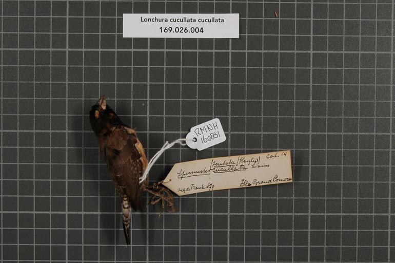 | Keywords: Naturalis Biodiversity Center - RMNH.AVES.160831 1 - Lonchura cucullata cucullata (Swainson, 1837) - Estrildidae - bird skin specimen.jpeg artwork Dimensions artwork Document type Estrildidae Lonchura Individual count 1 Infraspecific epithet cucullata Infraspecific rank Institution Naturalis Kind of unit artwork Kind of unit specimen skin Life stage Isle Grand Comoro Medium artwork Nomenclatural code Occurrence ID page Other fields Other versions artwork Permission license Naturalis donation CC-0 Publication location Scientific name Lonchura cucullata cucullata Swainson 1837 Scientific name authorship Swainson 1837 Source url http //bioportal naturalis nl Specific epithet cucullata State or province Subject keywords artwork Subject keywords publication Title artwork Title publication Type status Uploaded with GWToolset Naturalis_Biodiversity_Center_-_RMNH AVES 160831_1_-_Lonchura_cucullata_cucullata_ Swainson _1837 _-_Estrildidae_-_bird_skin_specimen http //medialib naturalis nl/file/id/RMNH AVES 160831_1/format/large Media donated by Naturalis Biodiversity Center Songbird specimens at Naturalis Biodiversity Center Lonchura cucullata Lonchura |