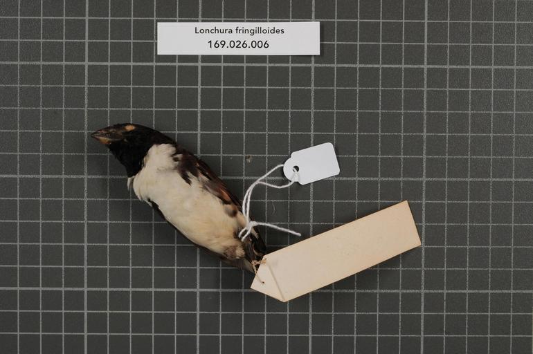 | Keywords: Naturalis Biodiversity Center - RMNH.AVES.160849 2 - Lonchura fringilloides Lafresnaye, 1835 - Estrildidae - bird skin specimen.jpeg artwork Dimensions artwork Document type Estrildidae Lonchura Individual count 1 Infraspecific epithet Infraspecific rank Institution Naturalis Kind of unit artwork Kind of unit specimen skin Life stage Liberia Grand Cape Mount Medium artwork Nomenclatural code Occurrence ID page Other fields Other versions artwork Permission license Naturalis donation CC-0 Publication location Scientific name Lonchura fringilloides Lafresnaye 1835 Scientific name authorship Lafresnaye 1835 female Source url http //bioportal naturalis nl Specific epithet fringilloides State or province Grand Cape Mount Subject keywords artwork Subject keywords publication Title artwork Title publication Type status Uploaded with GWToolset Naturalis_Biodiversity_Center_-_RMNH AVES 160849_2_-_Lonchura_fringilloides_Lafresnaye _1835_-_Estrildidae_-_bird_skin_specimen http //medialib naturalis nl/file/id/RMNH AVES 160849_2/format/large Media donated by Naturalis Biodiversity Center Songbird specimens at Naturalis Biodiversity Center Lonchura fringilloides Lonchura |