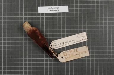 | Keywords: Naturalis Biodiversity Center - RMNH.AVES.161194 1 - Lonchura maja (Linnaeus, 1766) - Estrildidae - bird skin specimen.jpeg artwork Dimensions artwork Document type Estrildidae Lonchura Individual count 1 Infraspecific epithet Infraspecific rank Institution Naturalis Kind of unit artwork Kind of unit specimen skin Life stage Boekit Gadang res Palembang Medium artwork Nomenclatural code General remarks more information on original label in other languAge Occurrence ID page Other fields Other versions artwork Permission license Naturalis donation CC-0 Publication location Scientific name Lonchura maja Linnaeus 1766 Scientific name authorship Linnaeus 1766 male Source url http //bioportal naturalis nl Specific epithet maja State or province Subject keywords artwork Subject keywords publication Title artwork Title publication Type status Uploaded with GWToolset Naturalis_Biodiversity_Center_-_RMNH AVES 161194_1_-_Lonchura_maja_ Linnaeus _1766 _-_Estrildidae_-_bird_skin_specimen http //medialib naturalis nl/file/id/RMNH AVES 161194_1/format/large Media donated by Naturalis Biodiversity Center Songbird specimens at Naturalis Biodiversity Center Lonchura maja Lonchura |