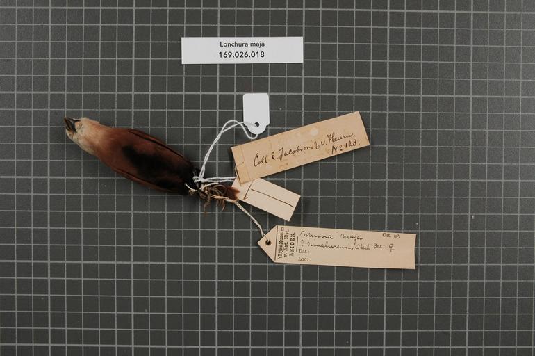| Keywords: Naturalis Biodiversity Center - RMNH.AVES.161224 2 - Lonchura maja (Linnaeus, 1766) - Estrildidae - bird skin specimen.jpeg artwork Dimensions artwork Document type Estrildidae Lonchura Individual count 1 Infraspecific epithet Infraspecific rank Institution Naturalis Kind of unit artwork Kind of unit specimen skin Life stage Simalur Sinabang Medium artwork Nomenclatural code Sex remark on label jacobson male on label RMNH f male Occurrence ID page Other fields Other versions artwork Permission license Naturalis donation CC-0 Publication location Scientific name Lonchura maja Linnaeus 1766 Scientific name authorship Linnaeus 1766 female Source url http //bioportal naturalis nl Specific epithet maja State or province Simalur Subject keywords artwork Subject keywords publication Title artwork Title publication Type status Uploaded with GWToolset Naturalis_Biodiversity_Center_-_RMNH AVES 161224_2_-_Lonchura_maja_ Linnaeus _1766 _-_Estrildidae_-_bird_skin_specimen http //medialib naturalis nl/file/id/RMNH AVES 161224_2/format/large Media donated by Naturalis Biodiversity Center Songbird specimens at Naturalis Biodiversity Center Lonchura maja Lonchura |