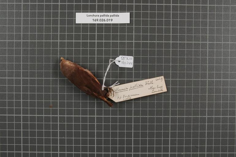 | Keywords: Naturalis Biodiversity Center - RMNH.AVES.161244 1 - Lonchura pallida pallida (Wallace, 1863) - Estrildidae - bird skin specimen.jpeg artwork Dimensions artwork Document type Estrildidae Lonchura Individual count 1 Infraspecific epithet pallida Infraspecific rank Institution Naturalis Kind of unit artwork Kind of unit specimen skin Life stage Lombok Mas bagé Medium artwork Nomenclatural code Occurrence ID page Other fields Other versions artwork Permission license Naturalis donation CC-0 Publication location Scientific name Lonchura pallida pallida Wallace 1863 Scientific name authorship Wallace 1863 Source url http //bioportal naturalis nl Specific epithet pallida State or province Lombok Subject keywords artwork Subject keywords publication Title artwork Title publication Type status Uploaded with GWToolset Naturalis_Biodiversity_Center_-_RMNH AVES 161244_1_-_Lonchura_pallida_pallida_ Wallace _1863 _-_Estrildidae_-_bird_skin_specimen http //medialib naturalis nl/file/id/RMNH AVES 161244_1/format/large Media donated by Naturalis Biodiversity Center Songbird specimens at Naturalis Biodiversity Center Lonchura pallida Lonchura |