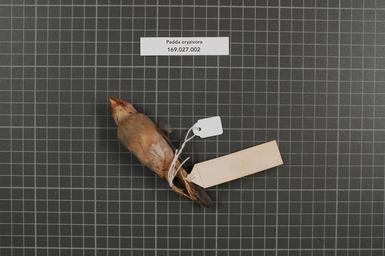 | Keywords: Naturalis Biodiversity Center - RMNH.AVES.161290 2 - Padda oryzivora (Linnaeus, 1758) - Estrildidae - bird skin specimen.jpeg artwork Dimensions artwork Document type Estrildidae Padda Individual count 1 Infraspecific epithet Infraspecific rank Institution Naturalis Kind of unit artwork Kind of unit specimen skin Life stage juvenile Wonosalam Medium artwork Nomenclatural code Occurrence ID page Other fields Other versions artwork Permission license Naturalis donation CC-0 Publication location Scientific name Padda oryzivora Linnaeus 1758 Scientific name authorship Linnaeus 1758 Source url http //bioportal naturalis nl Specific epithet oryzivora State or province Subject keywords artwork Subject keywords publication Title artwork Title publication Type status Uploaded with GWToolset Naturalis_Biodiversity_Center_-_RMNH AVES 161290_2_-_Padda_oryzivora_ Linnaeus _1758 _-_Estrildidae_-_bird_skin_specimen http //medialib naturalis nl/file/id/RMNH AVES 161290_2/format/large Media donated by Naturalis Biodiversity Center Songbird specimens at Naturalis Biodiversity Center Lonchura oryzivora Lonchura |
