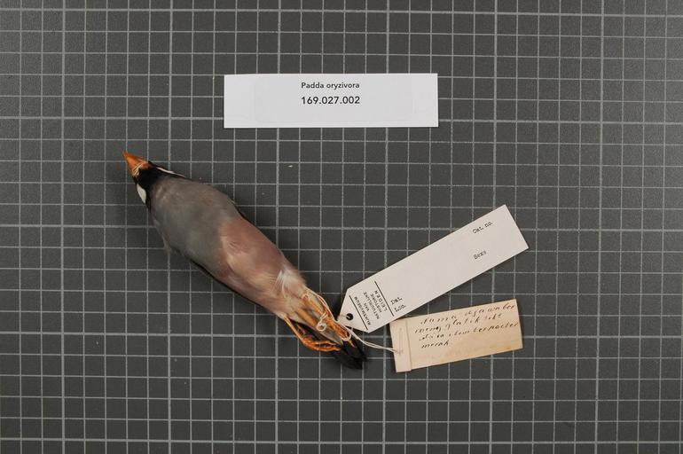 | Keywords: Naturalis Biodiversity Center - RMNH.AVES.161297 2 - Padda oryzivora (Linnaeus, 1758) - Estrildidae - bird skin specimen.jpeg artwork Dimensions artwork Document type Estrildidae Padda Individual count 1 Infraspecific epithet Infraspecific rank Institution Naturalis Kind of unit artwork Kind of unit specimen skin Life stage Indonesia Java Semarang Gedangan teak forest Medium artwork Nomenclatural code Occurrence ID page Other fields Other versions artwork Permission license Naturalis donation CC-0 Publication location Scientific name Padda oryzivora Linnaeus 1758 Scientific name authorship Linnaeus 1758 female Source url http //bioportal naturalis nl Specific epithet oryzivora State or province Java Semarang Subject keywords artwork Subject keywords publication Title artwork Title publication Type status Uploaded with GWToolset Naturalis_Biodiversity_Center_-_RMNH AVES 161297_2_-_Padda_oryzivora_ Linnaeus _1758 _-_Estrildidae_-_bird_skin_specimen http //medialib naturalis nl/file/id/RMNH AVES 161297_2/format/large Media donated by Naturalis Biodiversity Center Songbird specimens at Naturalis Biodiversity Center Lonchura oryzivora Lonchura |