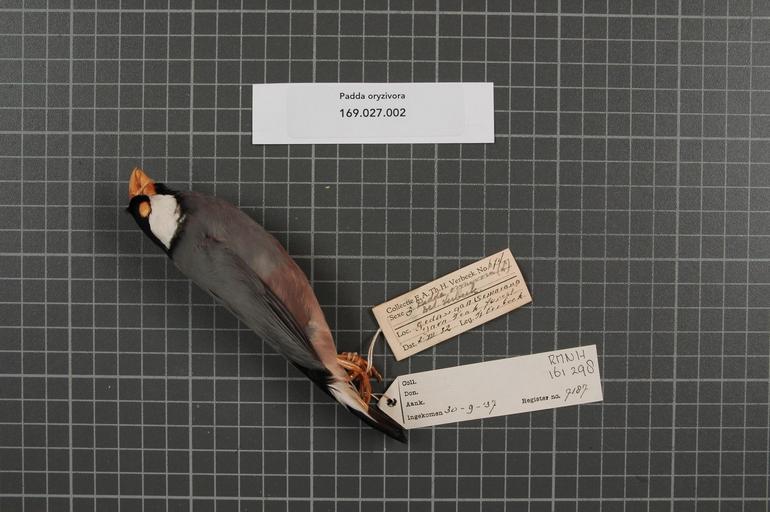| Keywords: Naturalis Biodiversity Center - RMNH.AVES.161298 1 - Padda oryzivora (Linnaeus, 1758) - Estrildidae - bird skin specimen.jpeg artwork Dimensions artwork Document type Estrildidae Padda Individual count 1 Infraspecific epithet Infraspecific rank Institution Naturalis Kind of unit artwork Kind of unit specimen skin Life stage Indonesia Java Semarang Gedangan teak forest Medium artwork Nomenclatural code Occurrence ID page Other fields Other versions artwork Permission license Naturalis donation CC-0 Publication location Scientific name Padda oryzivora Linnaeus 1758 Scientific name authorship Linnaeus 1758 male Source url http //bioportal naturalis nl Specific epithet oryzivora State or province Java Semarang Subject keywords artwork Subject keywords publication Title artwork Title publication Type status Uploaded with GWToolset Naturalis_Biodiversity_Center_-_RMNH AVES 161298_1_-_Padda_oryzivora_ Linnaeus _1758 _-_Estrildidae_-_bird_skin_specimen http //medialib naturalis nl/file/id/RMNH AVES 161298_1/format/large Media donated by Naturalis Biodiversity Center Songbird specimens at Naturalis Biodiversity Center Lonchura oryzivora Lonchura |