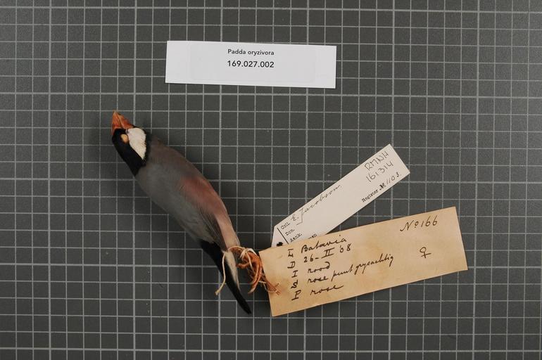| Keywords: Naturalis Biodiversity Center - RMNH.AVES.161314 1 - Padda oryzivora (Linnaeus, 1758) - Estrildidae - bird skin specimen.jpeg artwork Dimensions artwork Document type Estrildidae Padda Individual count 1 Infraspecific epithet Infraspecific rank Institution Naturalis Kind of unit artwork Kind of unit specimen skin Life stage Batavia Medium artwork Nomenclatural code Occurrence ID page Other fields Other versions artwork Permission license Naturalis donation CC-0 Publication location Scientific name Padda oryzivora Linnaeus 1758 Scientific name authorship Linnaeus 1758 female Source url http //bioportal naturalis nl Specific epithet oryzivora State or province Batavia Subject keywords artwork Subject keywords publication Title artwork Title publication Type status Uploaded with GWToolset Naturalis_Biodiversity_Center_-_RMNH AVES 161314_1_-_Padda_oryzivora_ Linnaeus _1758 _-_Estrildidae_-_bird_skin_specimen http //medialib naturalis nl/file/id/RMNH AVES 161314_1/format/large Media donated by Naturalis Biodiversity Center Songbird specimens at Naturalis Biodiversity Center Lonchura oryzivora Lonchura |