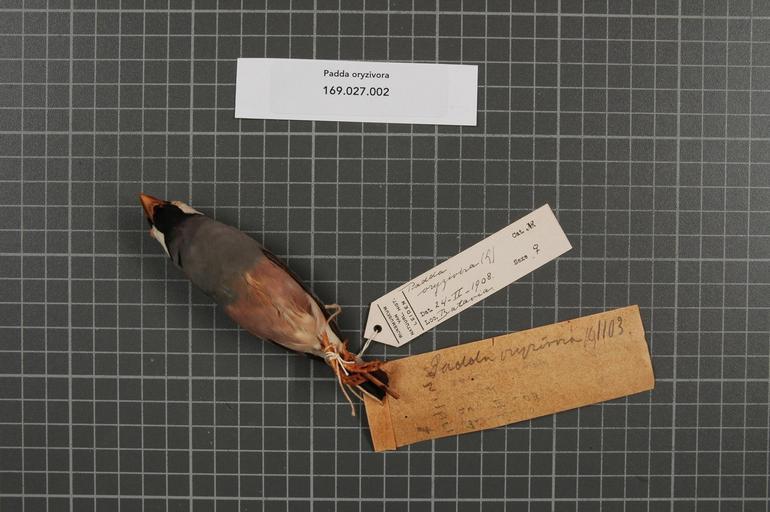 | Keywords: Naturalis Biodiversity Center - RMNH.AVES.161315 2 - Padda oryzivora (Linnaeus, 1758) - Estrildidae - bird skin specimen.jpeg artwork Dimensions artwork Document type Estrildidae Padda Individual count 1 Infraspecific epithet Infraspecific rank Institution Naturalis Kind of unit artwork Kind of unit specimen skin Life stage Batavia Medium artwork Nomenclatural code Occurrence ID page Other fields Other versions artwork Permission license Naturalis donation CC-0 Publication location Scientific name Padda oryzivora Linnaeus 1758 Scientific name authorship Linnaeus 1758 female Source url http //bioportal naturalis nl Specific epithet oryzivora State or province Batavia Subject keywords artwork Subject keywords publication Title artwork Title publication Type status Uploaded with GWToolset Naturalis_Biodiversity_Center_-_RMNH AVES 161315_2_-_Padda_oryzivora_ Linnaeus _1758 _-_Estrildidae_-_bird_skin_specimen http //medialib naturalis nl/file/id/RMNH AVES 161315_2/format/large Media donated by Naturalis Biodiversity Center Songbird specimens at Naturalis Biodiversity Center Lonchura oryzivora Lonchura |