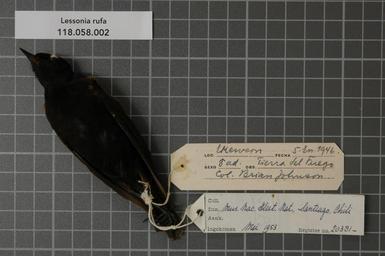 | Keywords: Naturalis Biodiversity Center - RMNH.AVES.20381 2 - Lessonia rufa (Gmelin, 1789) - Tyrannidae - bird skin specimen.jpeg artwork Dimensions artwork Document type Tyrannidae Lessonia Individual count 1 Infraspecific epithet Infraspecific rank Institution Naturalis Kind of unit artwork Kind of unit specimen skin Life stage adult Tierra del Fuego Ekewern Medium artwork Nomenclatural code Occurrence ID page Other fields Other versions artwork Permission license Naturalis donation CC-0 Publication location Scientific name Lessonia rufa Gmelin 1789 Scientific name authorship Gmelin 1789 male Source url http //bioportal naturalis nl Specific epithet rufa State or province Tierra del Fuego Subject keywords artwork Subject keywords publication Title artwork Title publication Type status Uploaded with GWToolset Naturalis_Biodiversity_Center_-_RMNH AVES 20381_2_-_Lessonia_rufa_ Gmelin _1789 _-_Tyrannidae_-_bird_skin_specimen http //medialib naturalis nl/file/id/RMNH AVES 20381_2/format/large Media donated by Naturalis Biodiversity Center Songbird specimens at Naturalis Biodiversity Center Lessonia rufa Lessonia |
