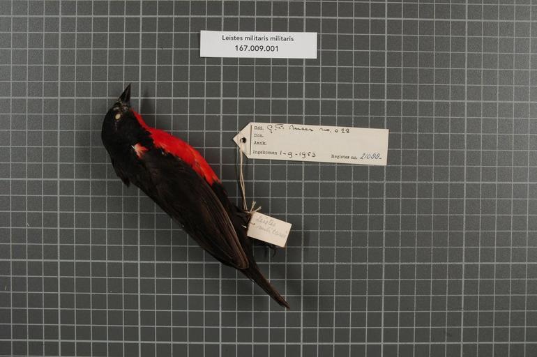 | Keywords: Naturalis Biodiversity Center - RMNH.AVES.21088 1 - Leistes militaris militaris (Linnaeus, 1758) - Icteridae - bird skin specimen.jpeg artwork Dimensions artwork Document type Icteridae Leistes Individual count 1 Infraspecific epithet militaris Infraspecific rank Institution Naturalis Kind of unit artwork Kind of unit specimen skin Life stage Trinidad Fort Read Medium artwork Nomenclatural code Occurrence ID page Other fields Other versions artwork Permission license Naturalis donation CC-0 Publication location Scientific name Leistes militaris militaris Linnaeus 1758 Scientific name authorship Linnaeus 1758 male Source url http //bioportal naturalis nl Specific epithet militaris State or province Subject keywords artwork Subject keywords publication Title artwork Title publication Type status Uploaded with GWToolset Naturalis_Biodiversity_Center_-_RMNH AVES 21088_1_-_Leistes_militaris_militaris_ Linnaeus _1758 _-_Icteridae_-_bird_skin_specimen http //medialib naturalis nl/file/id/RMNH AVES 21088_1/format/large Media donated by Naturalis Biodiversity Center Songbird specimens at Naturalis Biodiversity Center Sturnella militaris |