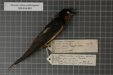 | Keywords: Naturalis Biodiversity Center - RMNH.AVES.21455 1 - Hirundo rustica erythrogaster Boddaert, 1783 - Hirundinidae - bird skin specimen.jpeg artwork Dimensions artwork Document type Hirundinidae Hirundo Individual count 1 Infraspecific epithet erythrogaster Infraspecific rank Institution Naturalis Kind of unit artwork Kind of unit specimen skin Life stage Trinidad Tacarigua Orange Grove Estate Medium artwork Nomenclatural code Occurrence ID page Other fields Other versions artwork Permission license Naturalis donation CC-0 Publication location Scientific name Hirundo rustica erythrogaster Boddaert 1783 Scientific name authorship Boddaert 1783 male Source url http //bioportal naturalis nl Specific epithet rustica State or province Subject keywords artwork Subject keywords publication Title artwork Title publication Type status Uploaded with GWToolset Naturalis_Biodiversity_Center_-_RMNH AVES 21455_1_-_Hirundo_rustica_erythrogaster_Boddaert _1783_-_Hirundinidae_-_bird_skin_specimen http //medialib naturalis nl/file/id/RMNH AVES 21455_1/format/large Media donated by Naturalis Biodiversity Center Songbird specimens at Naturalis Biodiversity Center Hirundo rustica Hirundo |