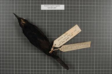 | Keywords: Naturalis Biodiversity Center - RMNH.AVES.21576 2 - Quiscalus lugubris lugubris Swainson, 1838 - Icteridae - bird skin specimen.jpeg artwork Dimensions artwork Document type Icteridae Quiscalus Individual count 1 Infraspecific epithet lugubris Infraspecific rank Institution Naturalis Kind of unit artwork Kind of unit specimen skin Life stage Trinidad Tacarigua Orange Grove Estate Medium artwork Nomenclatural code Sex remark on label Mees Sexe Occurrence ID page Other fields Other versions artwork Permission license Naturalis donation CC-0 Publication location Scientific name Quiscalus lugubris lugubris Swainson 1838 Scientific name authorship Swainson 1838 Source url http //bioportal naturalis nl Specific epithet lugubris State or province Subject keywords artwork Subject keywords publication Title artwork Title publication Type status Uploaded with GWToolset Naturalis_Biodiversity_Center_-_RMNH AVES 21576_2_-_Quiscalus_lugubris_lugubris_Swainson _1838_-_Icteridae_-_bird_skin_specimen http //medialib naturalis nl/file/id/RMNH AVES 21576_2/format/large Media donated by Naturalis Biodiversity Center Songbird specimens at Naturalis Biodiversity Center Quiscalus lugubris Quiscalus |